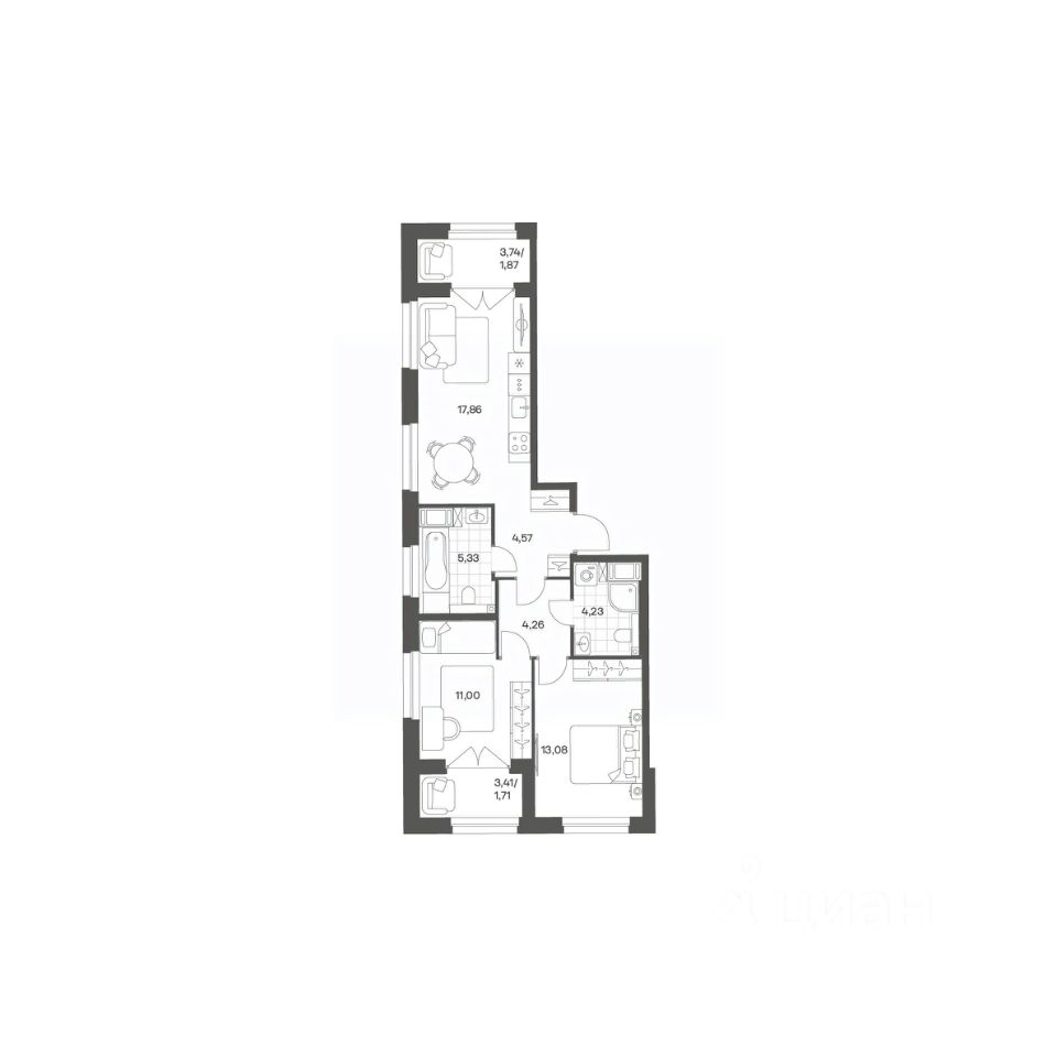 в Речной квартал от компании ГК "ТРЕСТ". Площадь кухни 17.86 м². Семейный жилой комплекс комфорт-класса "Речной квартал" от Группы компаний "ТРЕСТ" расположен в Невском районе Петербурга на пересечении Октябрьской набережной и Русановской улицы.