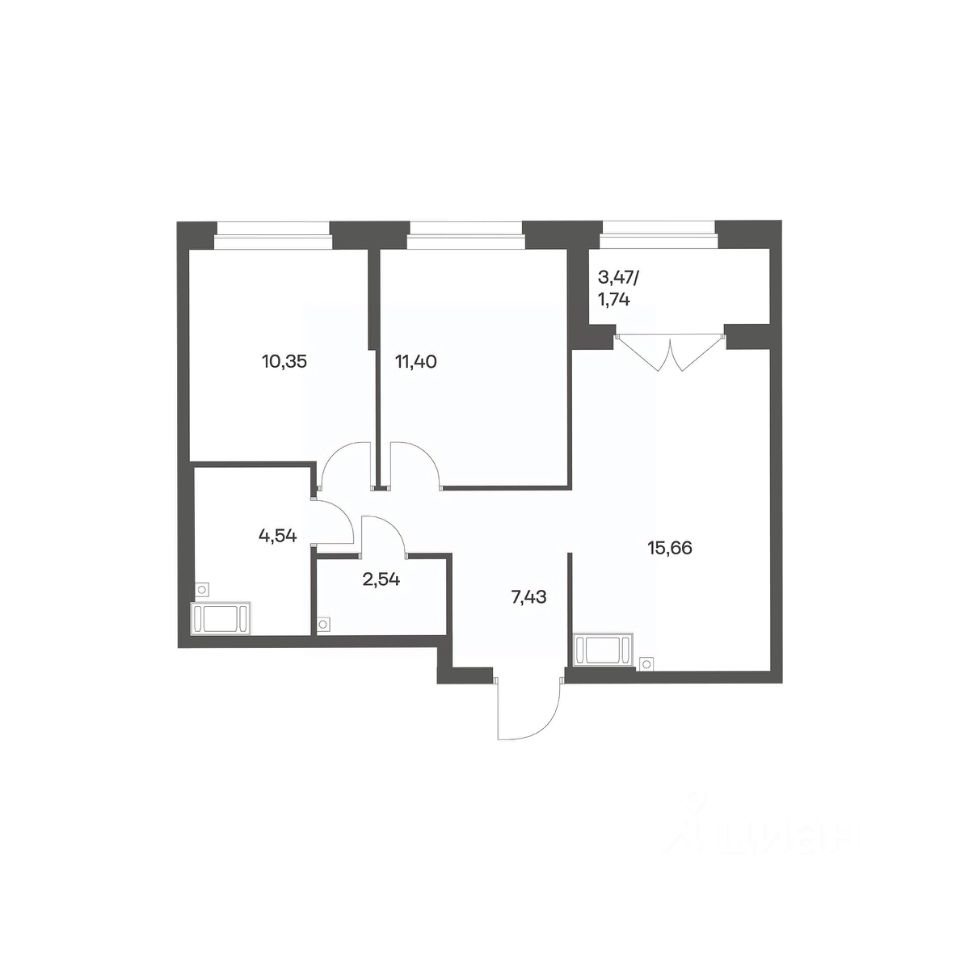 Продается квартира площадью 53.66 м²