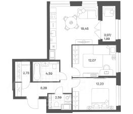 в Речной квартал от компании ГК "ТРЕСТ". Площадь кухни 18.45 м². Семейный жилой комплекс комфорт-класса "Речной квартал" от Группы компаний "ТРЕСТ" расположен в Невском районе Петербурга на пересечении Октябрьской набережной и Русановской улицы.