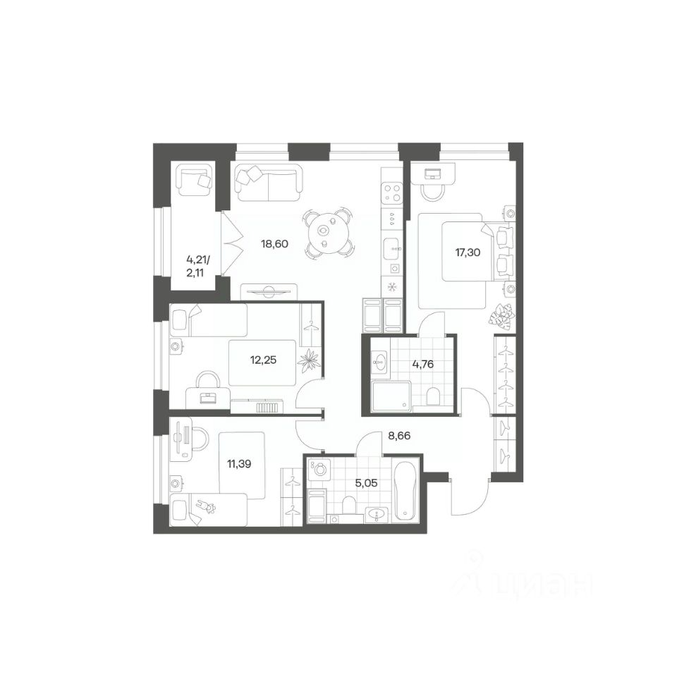 Квартал рассчитан на семейных покупателей, поэтому здесь нет студий: только одно-, двух- и трёхкомнатные квартиры. В проекте представлены квартиры с кухнями-гостиными, мастер-спальнями, гардеробными и кладовыми.