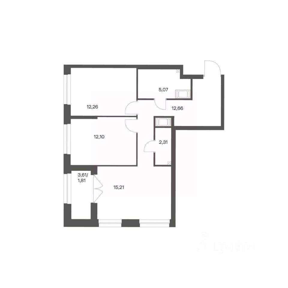Продается квартира площадью 61.42 м²