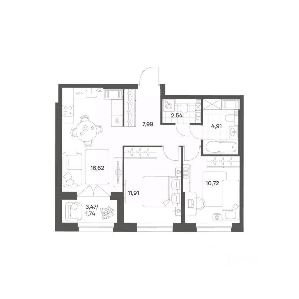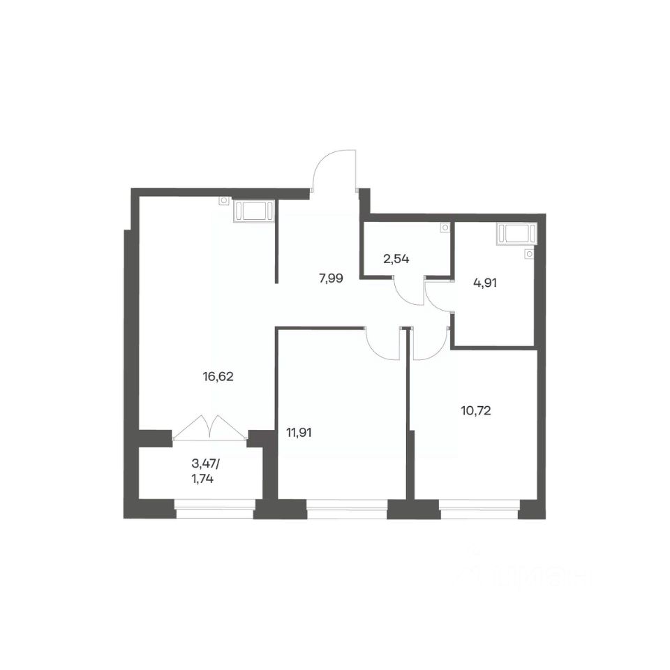 Продается квартира площадью 56.43 м²