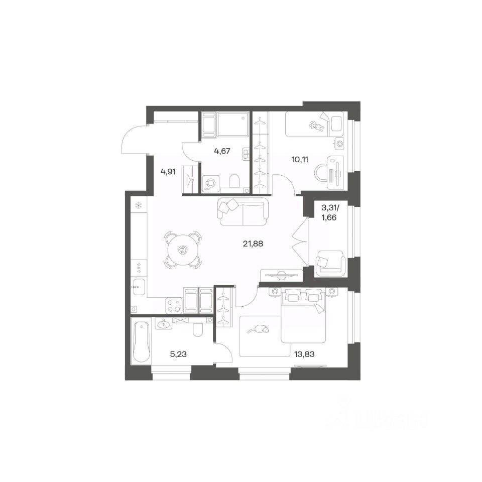 Квартал рассчитан на семейных покупателей, поэтому здесь нет студий: только одно-, двух- и трёхкомнатные квартиры. В проекте представлены квартиры с кухнями-гостиными, мастер-спальнями, гардеробными и кладовыми.