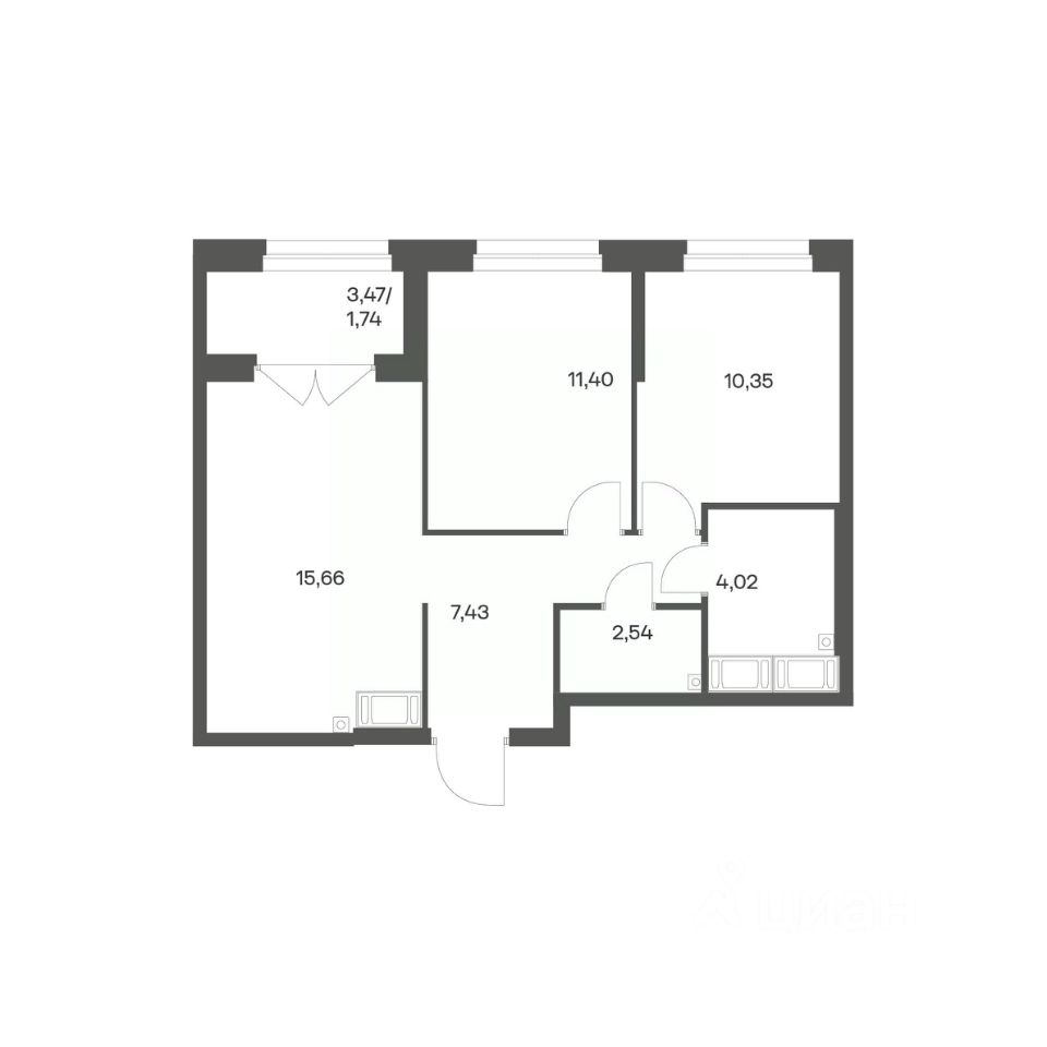 Продается квартира площадью 53.14 м²