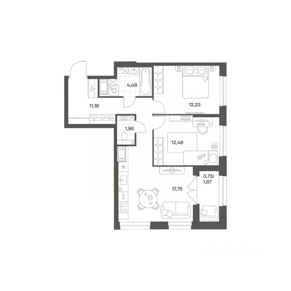 Продается квартира площадью 61.93 м²