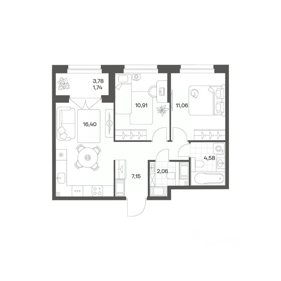 Квартал рассчитан на семейных покупателей, поэтому здесь нет студий: только одно-, двух- и трёхкомнатные квартиры. В проекте представлены квартиры с кухнями-гостиными, мастер-спальнями, гардеробными и кладовыми.