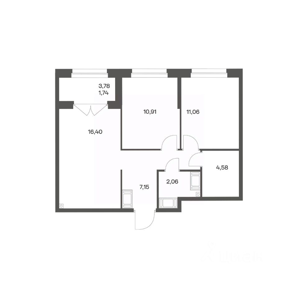 Продается квартира площадью 53.9 м²