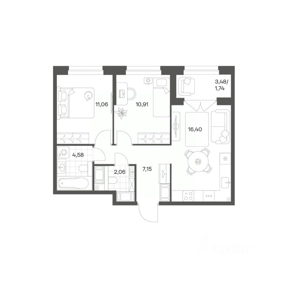 Квартал рассчитан на семейных покупателей, поэтому здесь нет студий: только одно-, двух- и трёхкомнатные квартиры. В проекте представлены квартиры с кухнями-гостиными, мастер-спальнями, гардеробными и кладовыми.