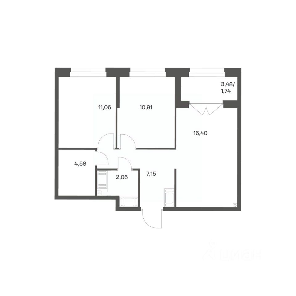Продается квартира площадью 53.9 м²