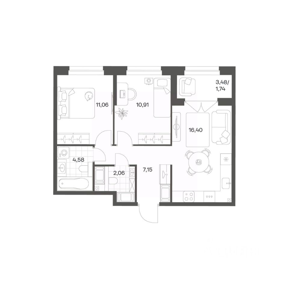 Квартал рассчитан на семейных покупателей, поэтому здесь нет студий: только одно-, двух- и трёхкомнатные квартиры. В проекте представлены квартиры с кухнями-гостиными, мастер-спальнями, гардеробными и кладовыми.