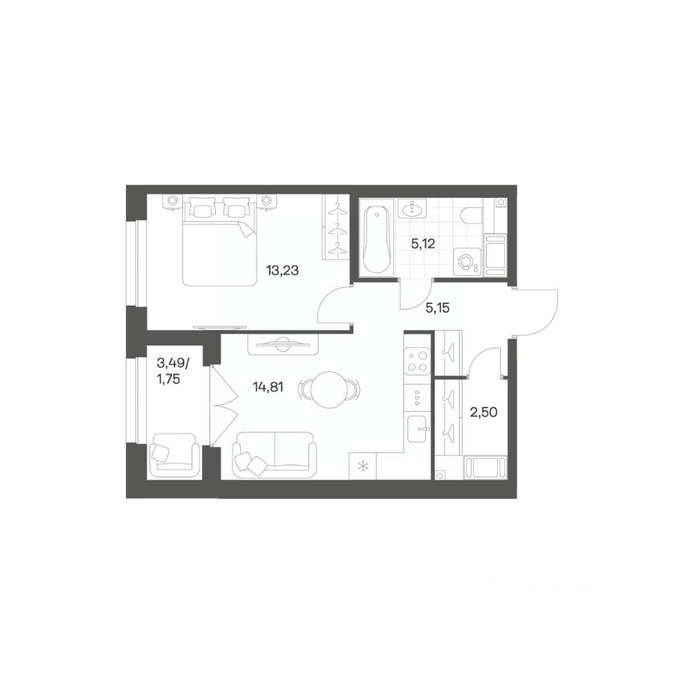 Продается квартира площадью 42.56 м²
