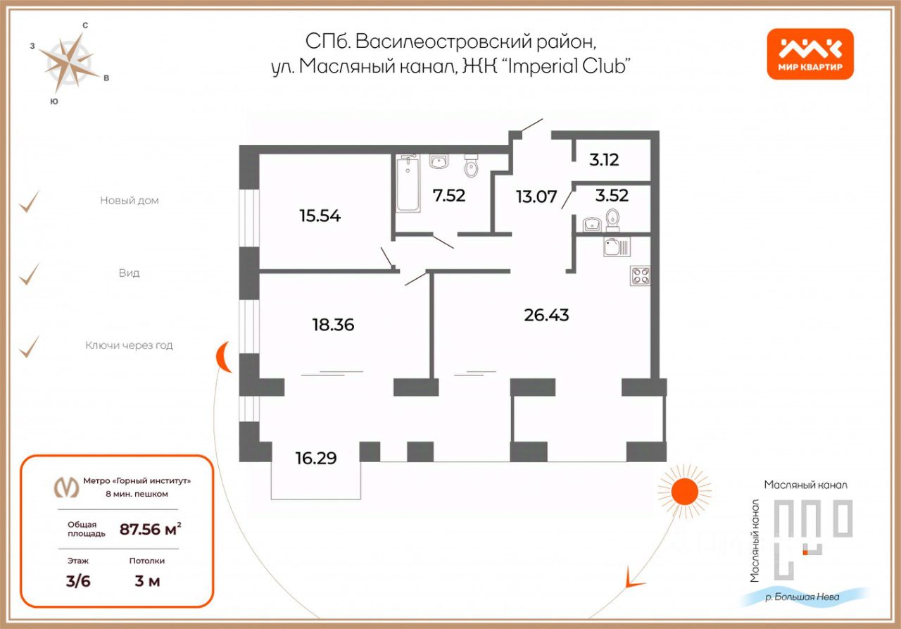 Арт. 126469851 В продаже видовая евро3 квартира в топовом проекте от Сетла - Imperial Club.