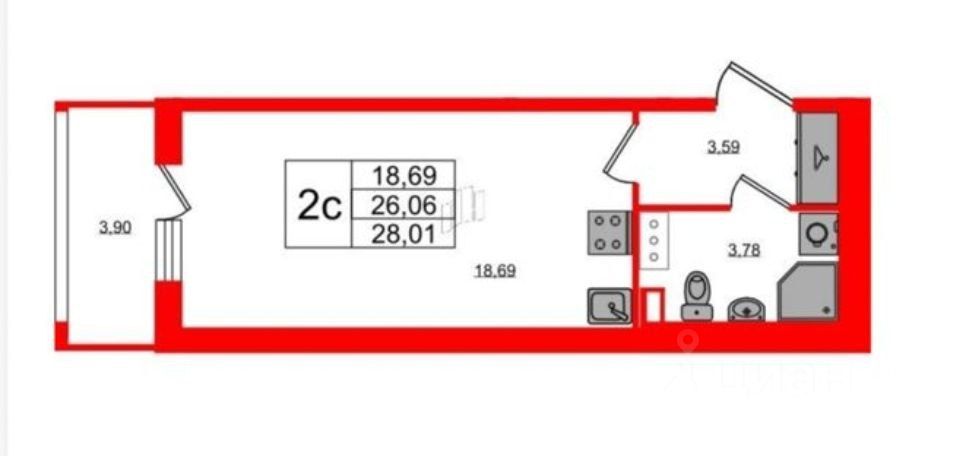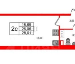 - Функциональная планировка правильной формы с возможностью зонирования на зону кухни и зону отдыха, просторный сан.узел. В прихожей предусмотрено место под шкаф.