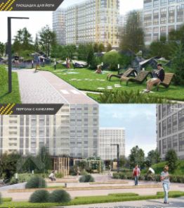 - ландшафтный дизайн, собственный коммьюнити-центр и коворкинг во дворе;