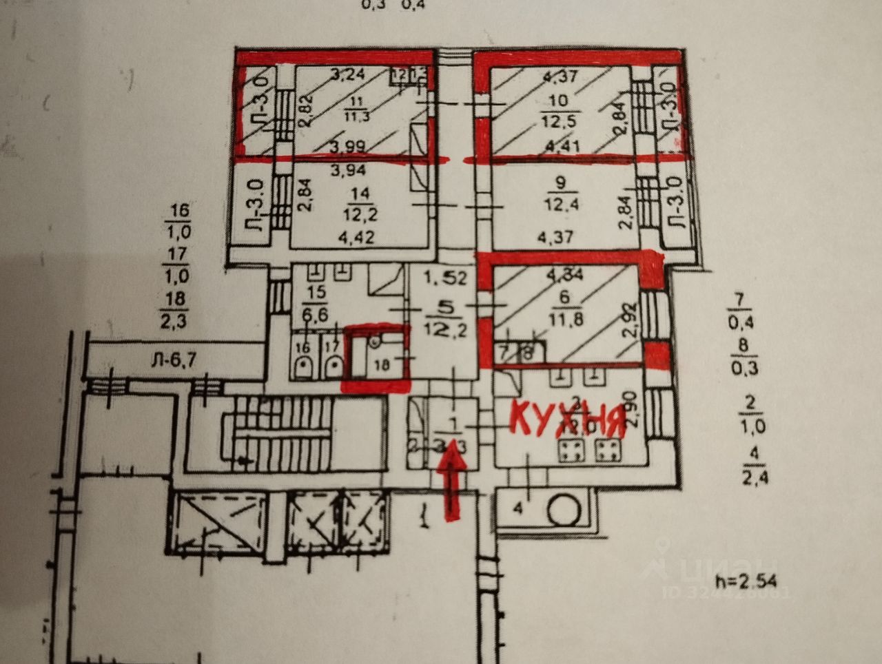 Три комнаты в 5 комнатной квартире. Две комнаты с лоджиями (каждая лоджия по 3 кв м, застеклены, по сторонам света-восток и запад) удачно расположены в конце коридора, их можно отделить дверью и получить дополнительное пространство (получится более 30 кв м с лоджиями). Третья комната расположена рядом с кухней, и в ней можно оборудовать свою кухню, тк внизу находятся нежилые помещения. На действующей кухне есть свои шкафы и рабочие столы, своя раковина и плита.