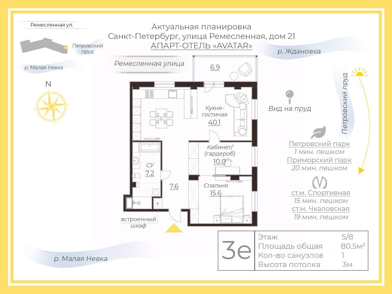 Развитая инфраструктура острова. У вас под рукой буквально все необходимое: от салонов красоты, барбершопов и ресторанов до общественных пространств, спортивных и медицинских центров. В пешей доступности Елагин остров и парки Крестовского. Рядом сквер, набережная.