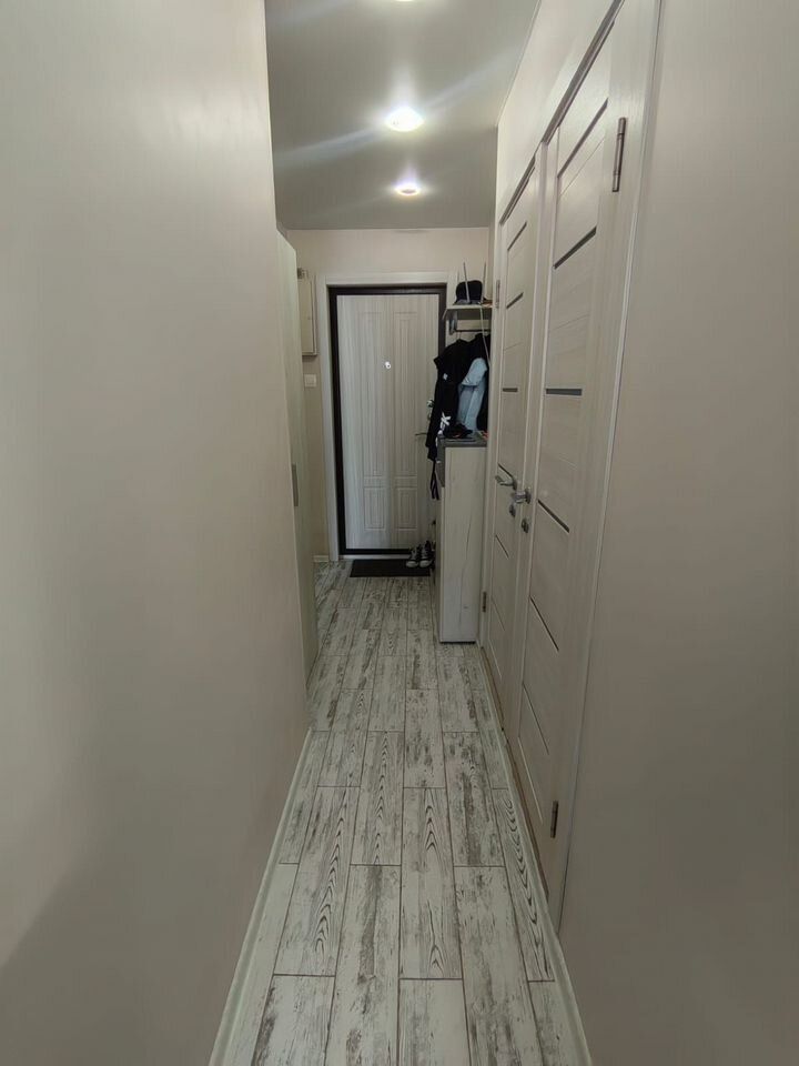 Удобная планировка: ниша в прихожей с гардеробной (прихожая, шкаф), раздельный санузел (стиральная машина с функцией сушилки), полноценная ванна. В комнате — большой шкаф, стенка, двухспальный диван.