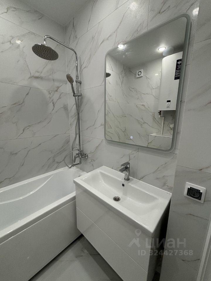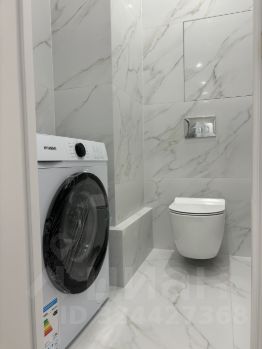 Выполнен качественный ремонт, работал дизайнер. Использовались только качественные материалы, пастельные цвета. Кухня, коридор - обои под окраску, краска. Санузлы - плитка керамогранит формат 1 200/600, теплый мрамор (в жизни выглядит еще лучше, не такой активный рисунок как на фото).