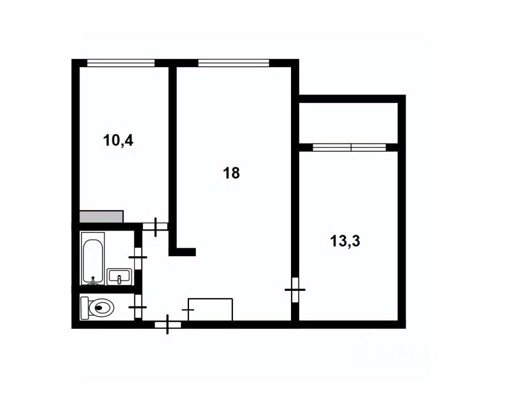 - Комнаты: 10 кв.м. + 13,3 кв.м.