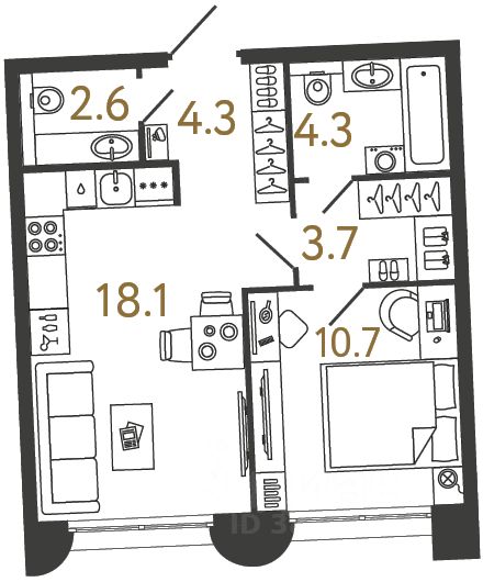 Продаётся 1-комнатная квартира в строящемся доме (Дом 38А), срок сдачи: IV-кв. 2028, общей площадью 43.7 кв.м., на 1 этаже.