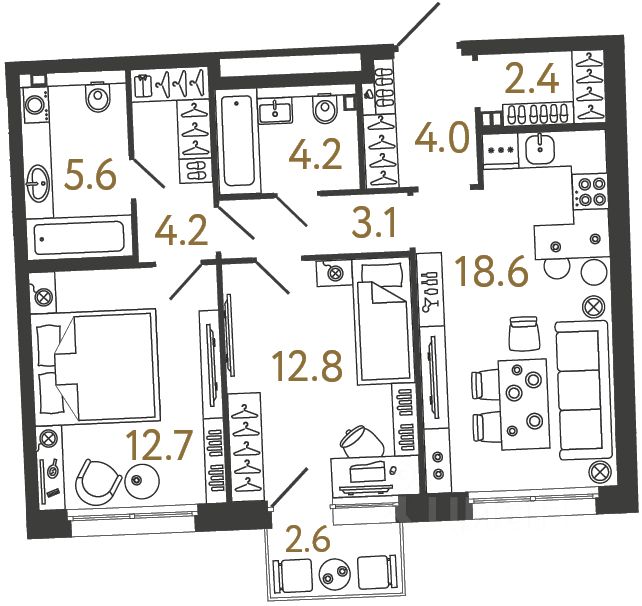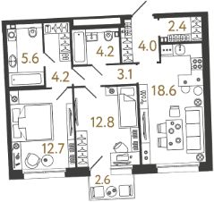 Продаётся 2-комнатная квартира в строящемся доме (Дом 38А), срок сдачи: IV-кв. 2028, общей площадью 67.6 кв.м., на 2 этаже.