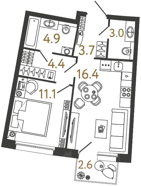1-комн. от 42,2 м²