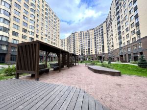 Общая площадь 64.9 кв.м + застекленная лоджия 3 кв.м. Две изолированные комнаты на разные стороны света 15.2 кв.м и 15.7 кв.м. Большая кухня 14.6 кв.м с возможностью сделать большую кухню-гостиную 29.8 кв.м. Прихожая 11.6 кв.м с нишей под шкаф. Два санузла! На этапе ремонта можете сделать второй санузел, прачечную или гардеробную. От застройщика сделана стяжка пола. На этаже 4 квартиры! Нет Студий. Входные группы чистые и светлые. По всей территории ведется видеонаблюдение. Много детских и спортивных площадок. Благоустроенная территория. Озеленение внутри двора. Есть места для отдыха.