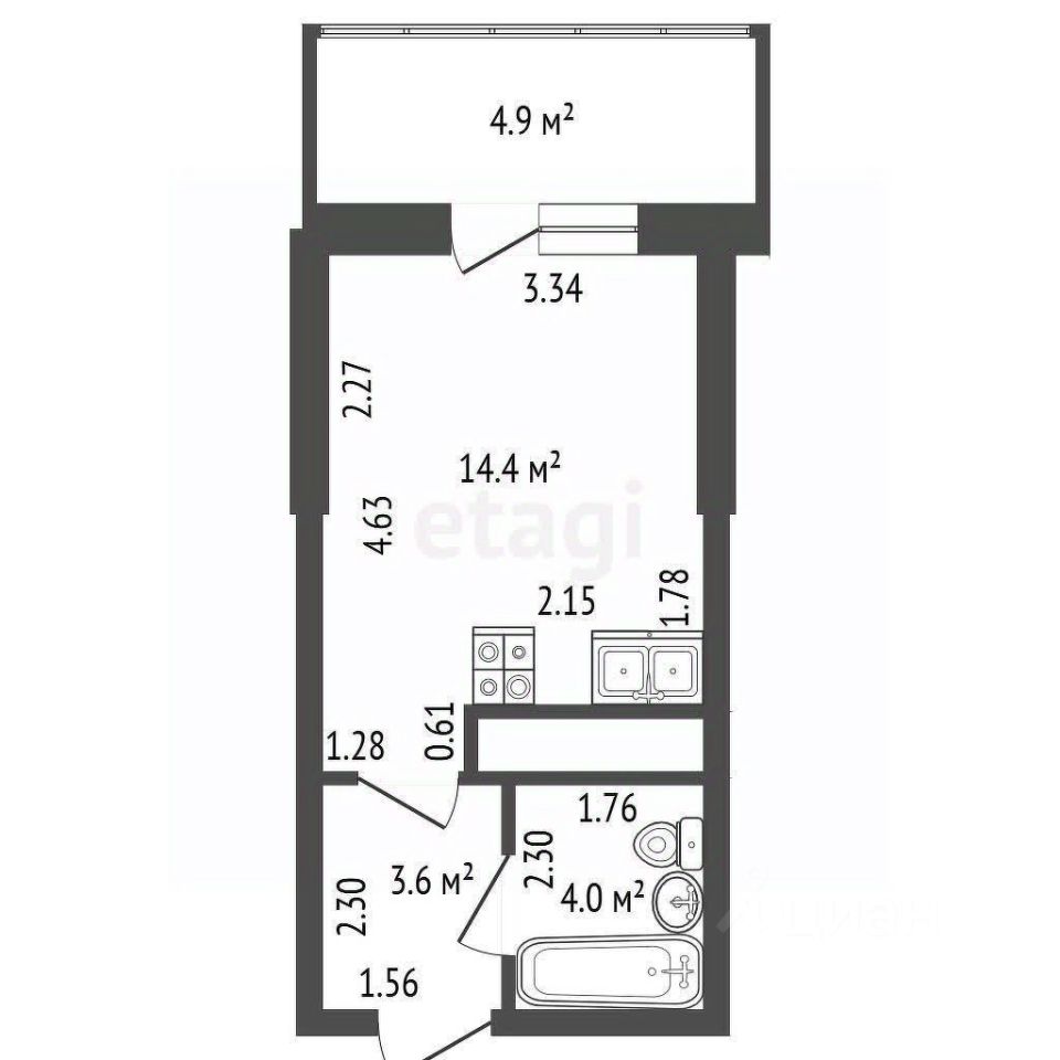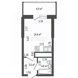 Общая площадь квартиры 23,5 м2 (с балконом):