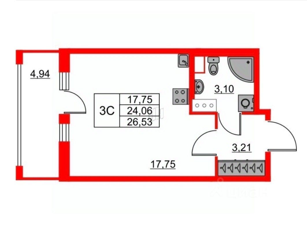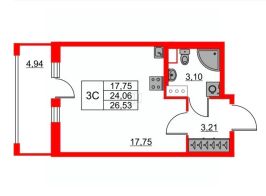 Арт. 126894017 В продаже по переуступке квартира студия 24.1 кв.м. в ЖК Город Звезд.