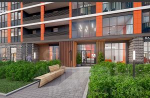 В доме стильная входная группа с ресепшен, подземный и наземный паркинг.