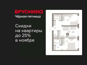 2-комн. квартира с предчистовой отделкой в ЖК "Северный ветер" на 4 этаже. Общая площадь: 63.65 кв.м., жилая: 27.8 кв.м., площадь просторной кухни-столовой: 15.9 кв.м. Комнаты изолированные, все окна выходят на одну сторону. В квартире два совмещенных санузла. Высота потолков 2.98 м.
