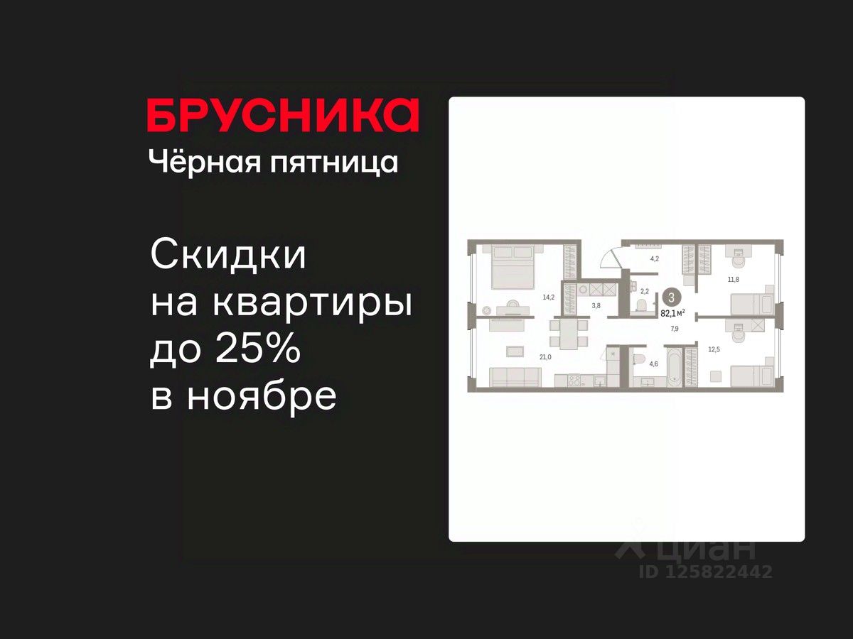 Продается трехкомнатная квартира от застройщика с предчистовой отделкой в ЖК "Северный ветер" на 7 этаже. Общая площадь: 82.11 кв.м., жилая: 38.5 кв.м., площадь просторной кухни-столовой: 21 кв.м. Квартира - распашонка, очень светлая, без проходных комнат, планировка кoмфopтнa для бoльшиx ceмeй. В квартире один совмещенный и один раздельный санузел. Высота потолков 2.98 м.