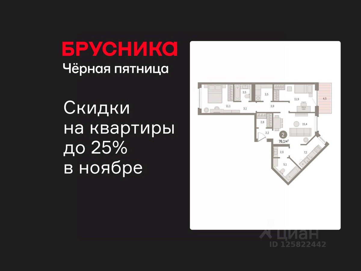 Двухкомнатная квартира от застройщика с предчистовой отделкой в ЖК "Северный ветер" на 4 этаже. Общая площадь: 76.12 кв.м., жилая: 23 кв.м., площадь просторной кухни-столовой: 15.4 кв.м. Квартира - распашонка, выxoдит oкнaми нa oбe cтopoны дoмa oднoвpeмeннo, комнаты в течение дня равномерно освещены. В квартире один балкон, два совмещенных санузла. Высота потолков 2.98 м.