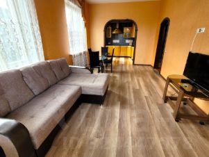 Кухня и комната объединены в зал площадью 30 кв.м. ( при желании легко можно вернуть планировку, как было изначально у застройщика с раздельной кухней и комнатой. (см. план). Большой холл около 20 метров со встроенным шкафом-купе. Вся мебель при желании остается.