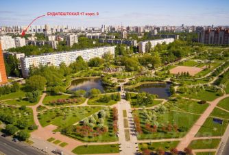 Отличное расположение. До метро Международная - 8 минут пешком. Вторая линия от дороги- нет шума транспорта. Развитая инфраструктура вокруг. Рядом 2 школы, детский сад, магазины. Зеленая зона отдыха Яблоневый сад- 5 минут пешком (см. фото)