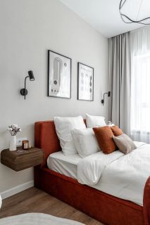 В спальной комнате установлена двухспальная кровать с прикроватными тумбами и кресло.
