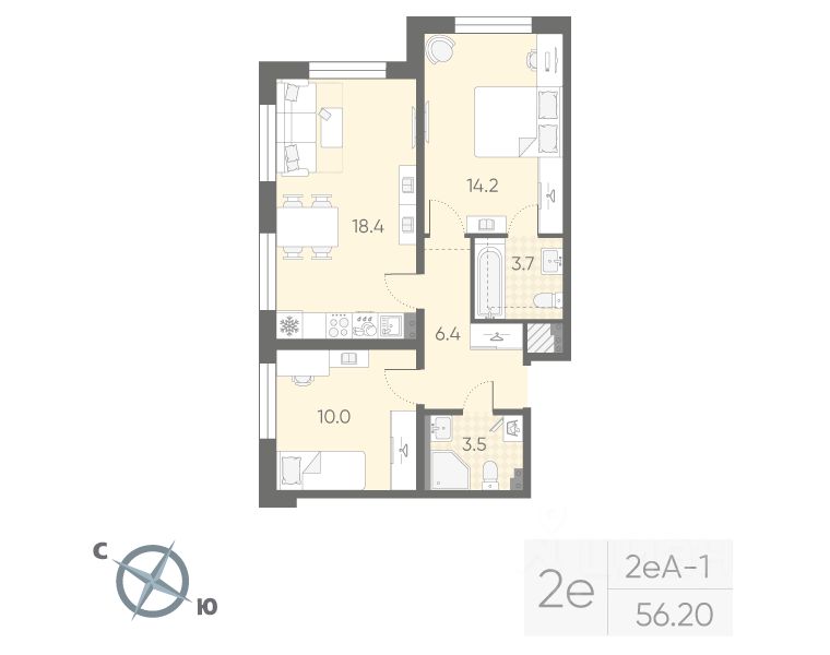 Продается 2-комнатная квартира в ЖК "Пулково Лейк" на 2 этаже. Общая площадь составляет 56.20 кв. м. Квартира с чистовой отделкой. Жилой комплекс "Пулково Лейк" располагается по адресу Санкт-Петербург, Московский.