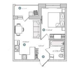 Квартира имеет удобную функциональную ЕВРО-ПЛАНИРОВКУ: кухня-гостиная 14,04 м2 с выходом на балкон; спальная комната 11,22 м2; совмещённый с ванной санузел 3,96 кв.м; просторная прихожая 4,23 кв.м. с возможностью устройства дополнительных систем хранения. Окна выходят на восточную сторону. Комфортный 9-ый этаж, вид на благоустроенный двор и боковой вид на Новоорловский заказник.