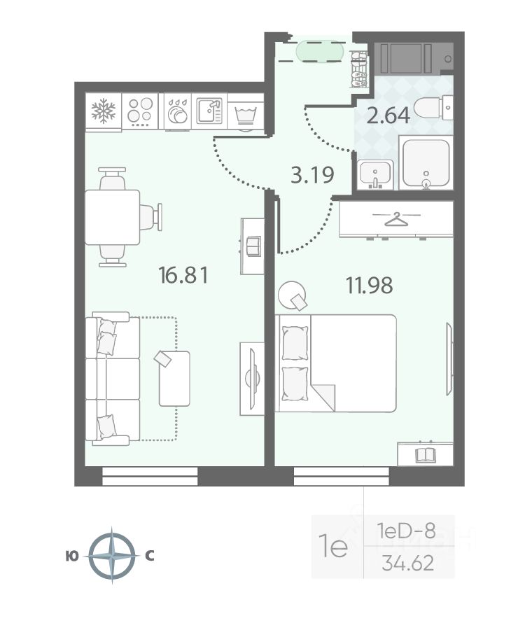 Между корпусами расположены спортивные и детские площадки, пешеходный бульвар. В квартире выполнена полная отделка "Comfort Wood" из качественных материалов: прочный ламинат цвета благородного дуба, фактурные белые обои, керамическая плитка в ванной.