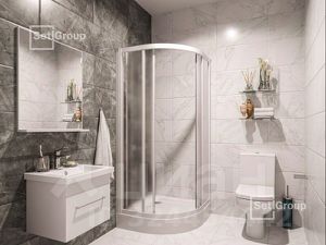 Удобная, классическая, функциональная европланировка, большая кухня-гостиная 17.26 м², вместительная прихожая 3.46 м². Общая площадь квартиры - 34.69 м², жилая 10.43 м², высота потолка 2.77 м.