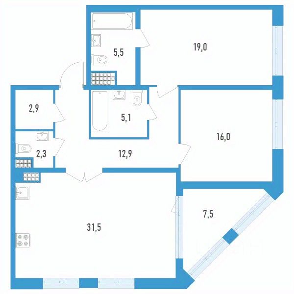 Продаётся 2-комнатная квартира в строящемся доме (Секции 15 и 16), срок сдачи: IV-кв. 2025, общей площадью 99 кв.м., на 11 этаже.
