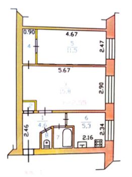Предлагается к продаже 2-комнатная квартира на первом этаже. Общая S 43 кв. М, кухня 5,3 кв. М., комнаты смежные 15,8+11,5 кв. М. С/уз совмещенный. В квартире требуется косметический ремонт.