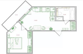 - Площадь и планировка: оптимальное пространство для молодых специалистов, студентов, семей с детьми или пар без детей. Возможность зонирования и комфортного проживания.