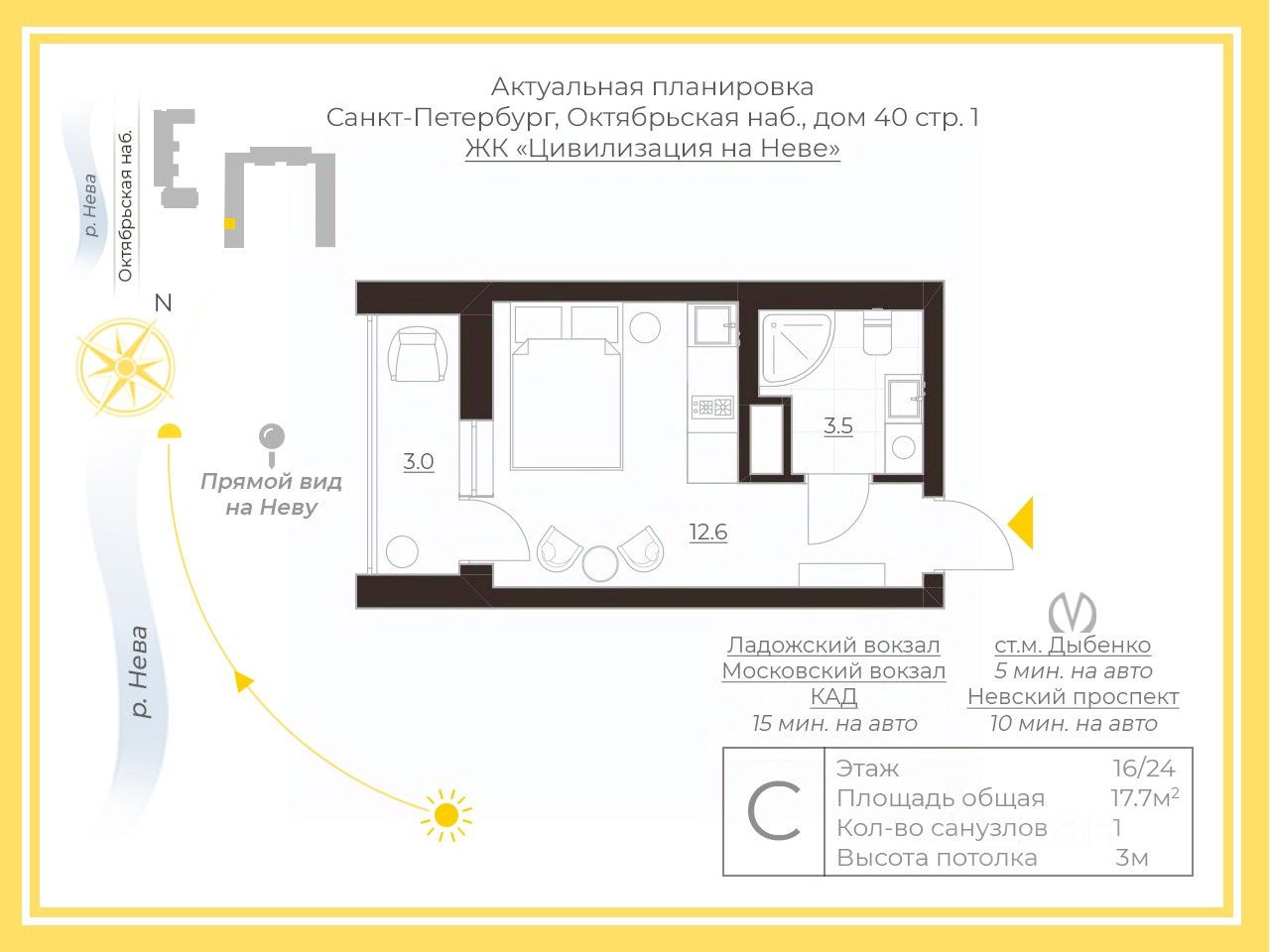 Арт. 126928566 Студия с видом на Неву в ЖК "Цивилизация на Неве" готовый арендный бизнес!