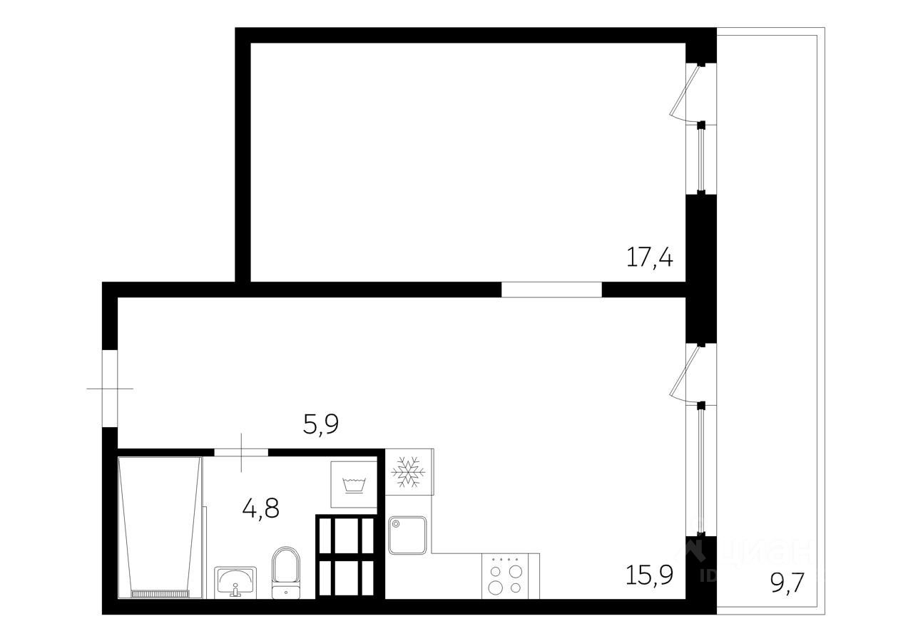 Продам просторную однокомнатную квартиру в современном районе Санкт-Петербурга, на 5 этаже.