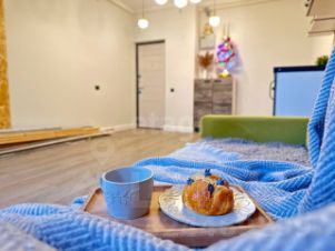 Просторная комната оформленная под студию площадью 22 м² расположена в трехкомнатной коммунальной квартире, в кирпичном доме, с пропиской в Санкт-Петербурге.