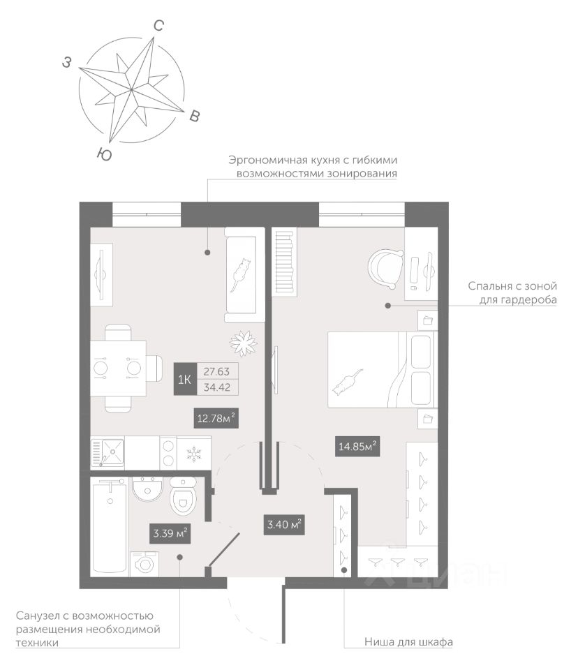 Цена со специальной скидкой в прямой продаже от застройщика — только в этом месяце. 1-к апартамент в комплексе класса бизнес-лайт Zoom Чёрная Речка на 4-м этаже. Общая площадь 34,42. Предчистовая отделка.