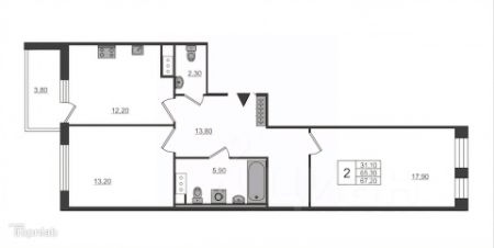 Арт. 101903299 В продаже по переуступке просторная двухкомнатная квартира в жилом комплексе бизнес-класса "Светлана парк".