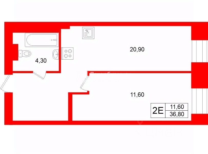 Самый ликвидный формат апартаментов в данном комплексе - 2-Е размером 36.7м2 с просторной кухней-гостиной и уютной спальней.