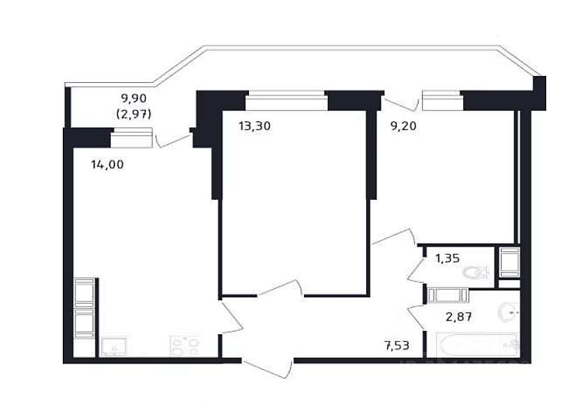 Две изолированные комнаты 13,3 м² и 9,2 м²;